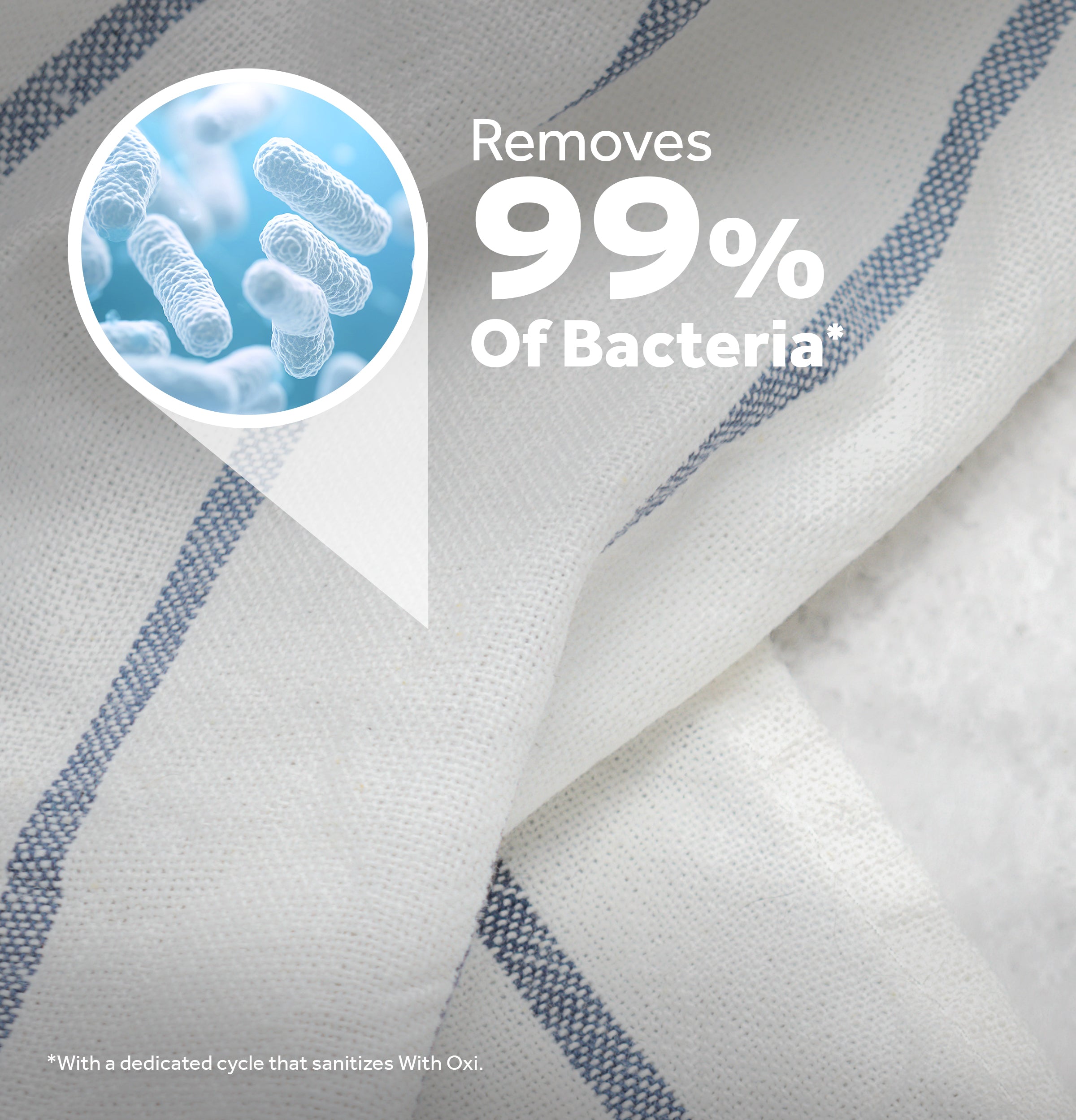 Remove 99% of bacteria with a dedicated cycle that lets you sanitize with Oxi. The additive boosts your detergent''s cleaning power so that you can keep your fabrics looking and feeling their best.