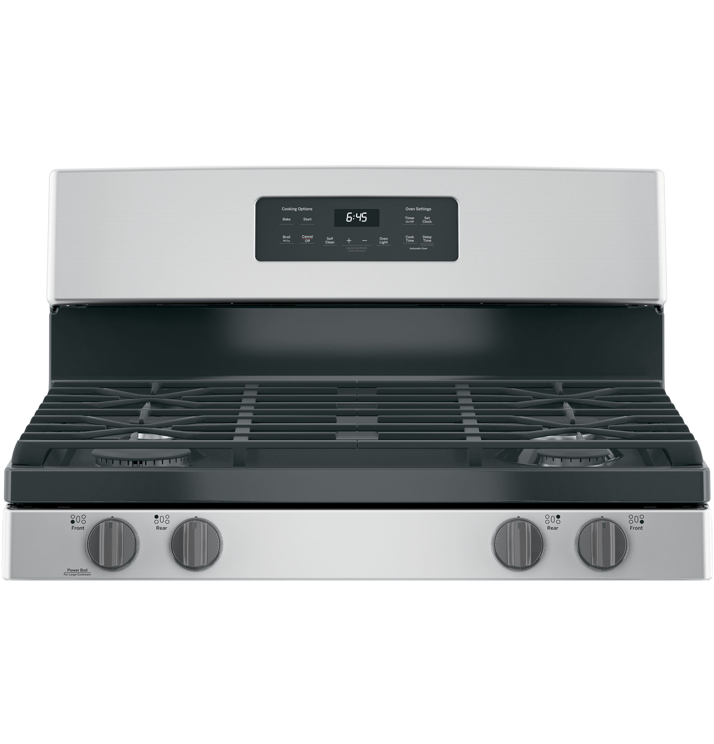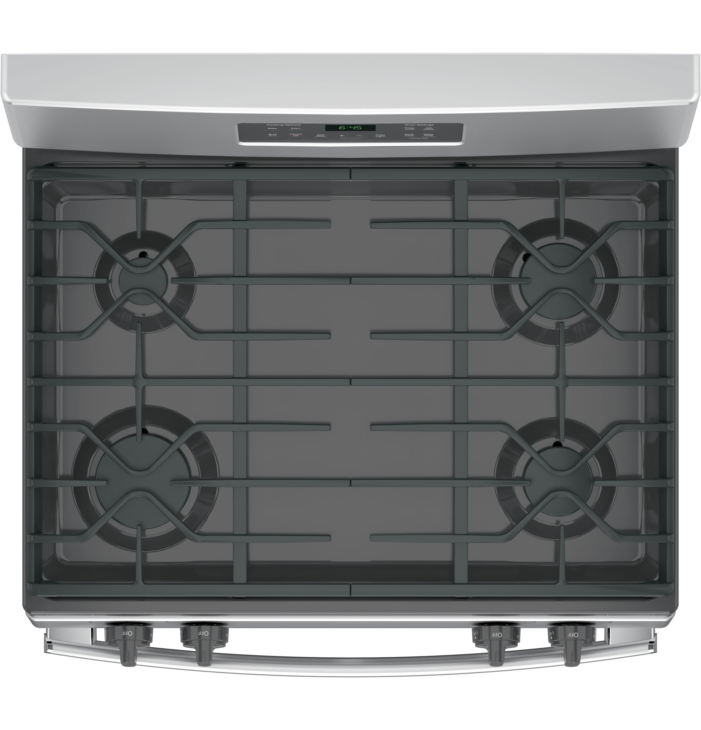 | Cooktop Surface | Edge-to-Edge, Gray, One-Piece Upswept, Porcelain-Enamel |