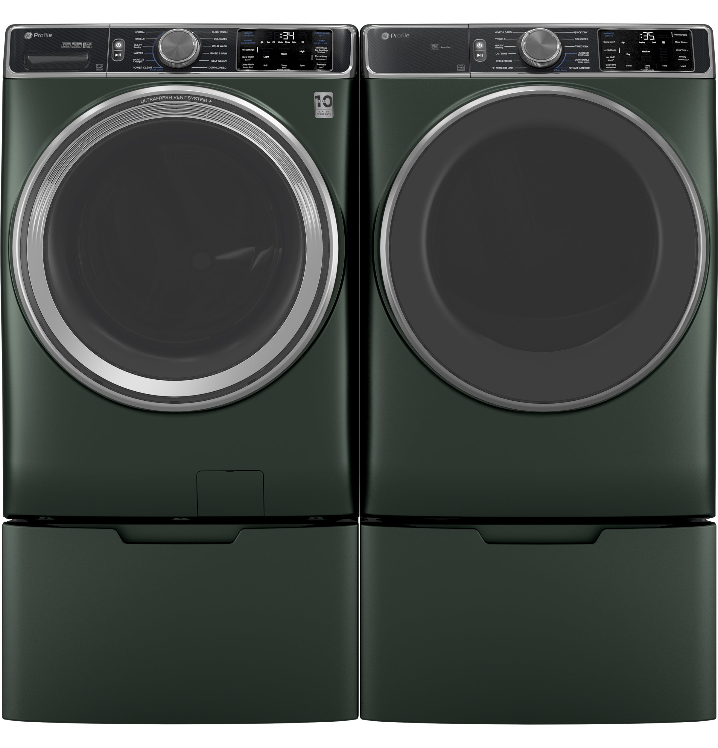 | Dryer Cycles | Bulky / Bedding, Cottons, Delicates, Mixed Loads, Perm Press, Quick Dry, Steam Dewrinkle, Steam Refresh, Steam Sanitize, Timed Dry, Towels, Washer Link |