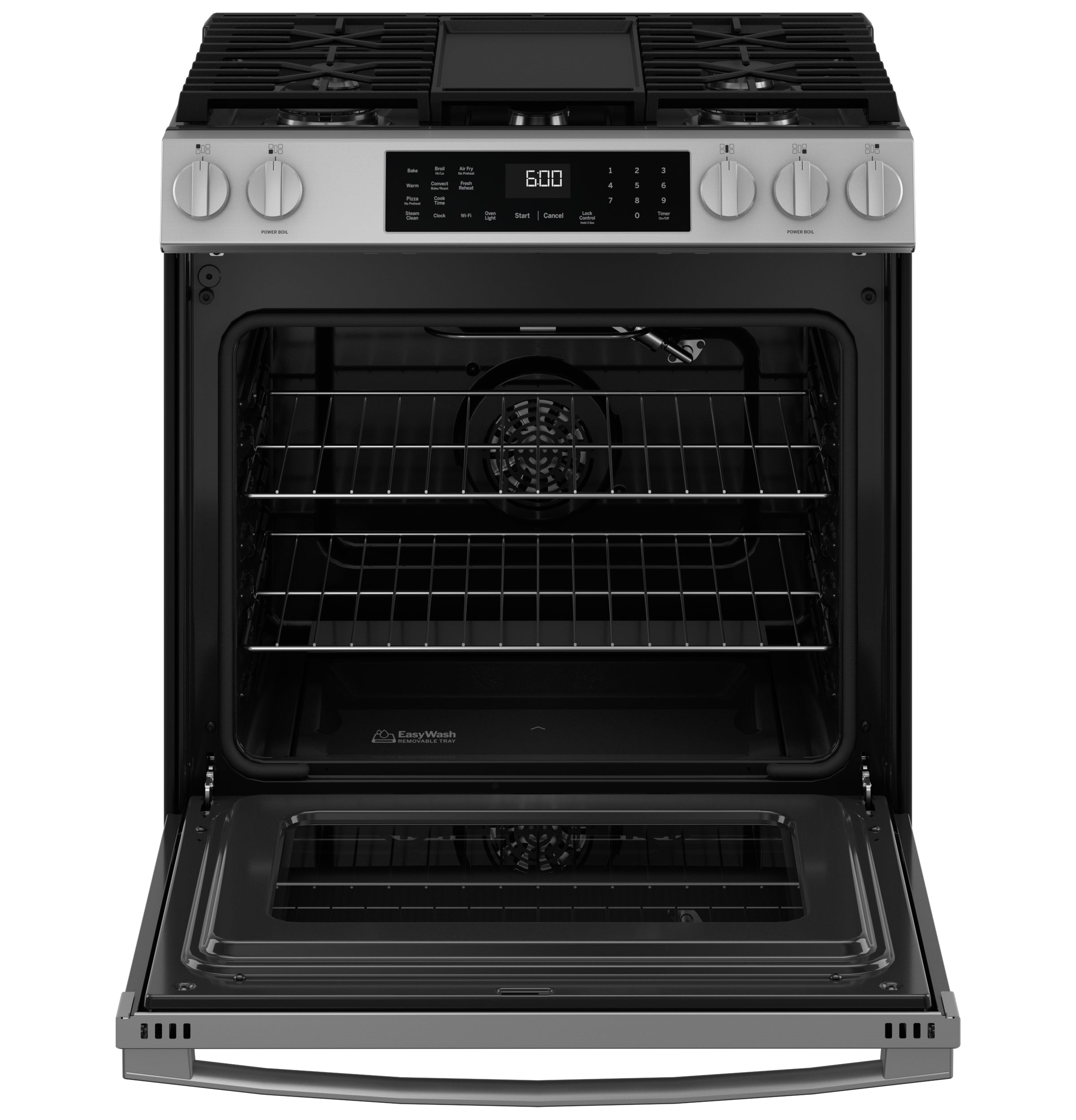 GE® 30" Slide-In Front-Control Convection Gas Range with No Preheat Air Fry and EasyWash™ Oven Tray