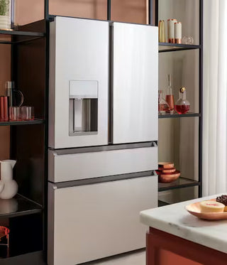 Our Café Platinum Glass Collection brings a fresh, luminous presence to your kitchen. This reflective glass feels modern and radiant—perfect for those who want their kitchen space to look custom made and feel as thoughtful and curated as the meals they create. Clean lines and a smooth surface give this collection its signature look—one that speaks to the minimalist at heart while offering the function today’s home cooks crave.